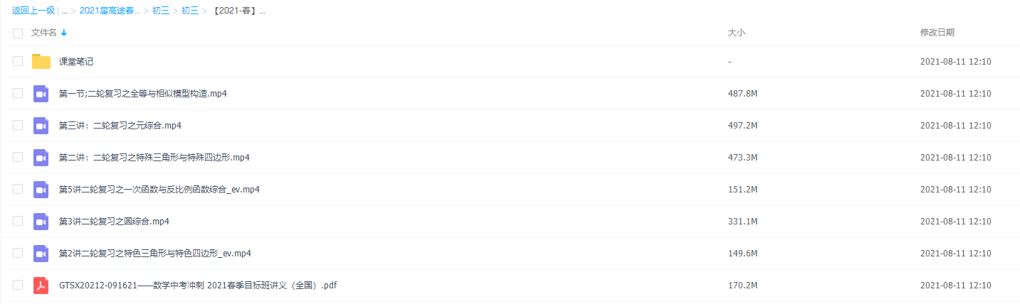 此课件来自高途课堂,2021高途课堂春季数学中考冲刺目标班(赵尔吉),包含视频课程和讲义资料 。 此课件主要内容包括:二轮复习之特殊三角形与特殊四边形、二轮复习之圆综合、二轮复习之应用型问题、二轮复习之一次函数与反比例函数综合、二轮复习之二次函数综合等视频