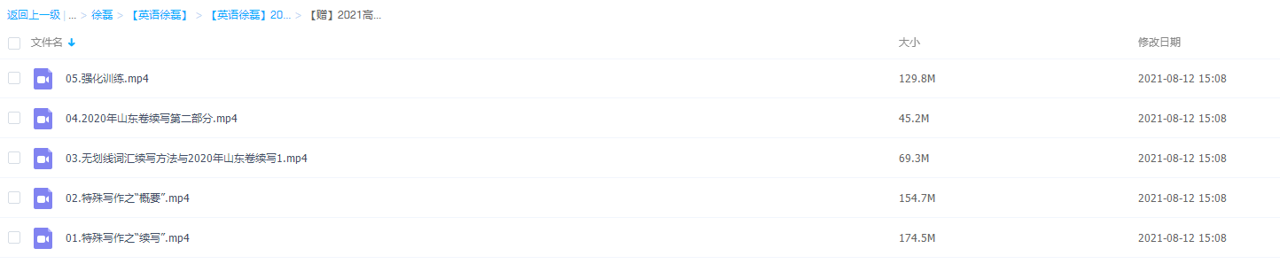 暑假已经结束了,教育盘小编给高三即将高考的小伙伴分享一个高三徐磊2021高考英语写作之“特殊班” ,资源目录如下:01.特殊写作之”续写”.mp4