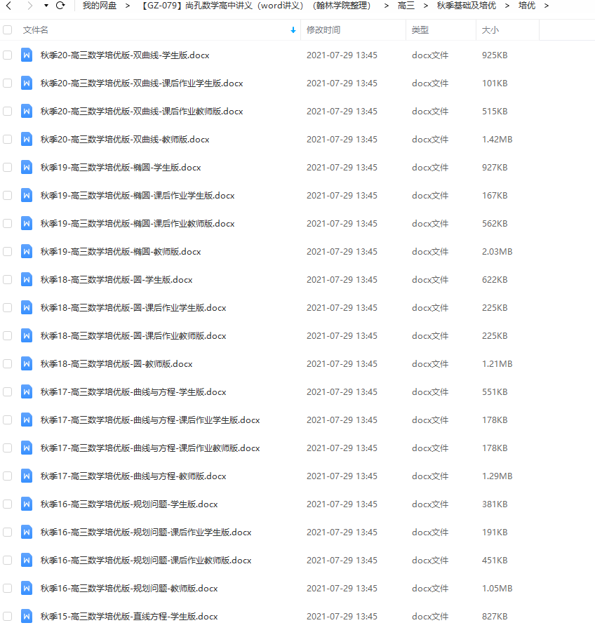 尚孔数学高中讲义word讲义高三秋季培优班高考必备