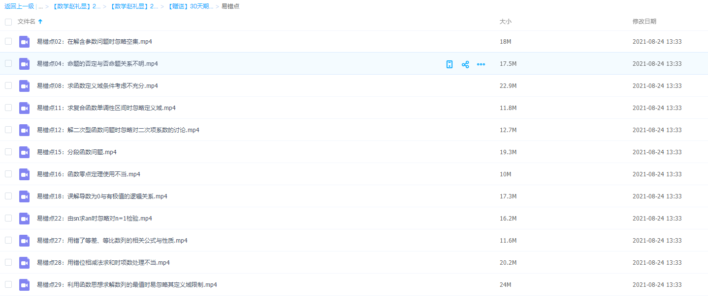 【数学赵礼显】2021高考二轮复习赠送30天期末打卡易错点
