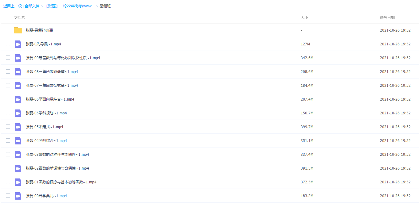 此课件来自高途课堂,2022高考数学张磊一轮暑假视频课程,包含视频课程和讲义资料 。此课件主要知识点包括:函数的概念与基本初等函数、函数的单调性与奇偶性、函数的对称性与周期性、平面向量综合、三角函数公式篇、三角函数图像篇和等差数列与等比数列以及性质等视频。