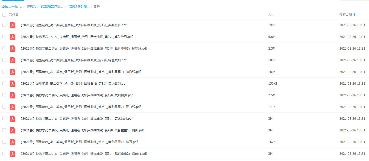 此课件来自作业帮网校,刘天麒 2021暑假 高二数学暑假尖端班,包含视频课程和讲义资料 。主讲刘天麒老师以最大的热情,努力让自己的感染力穿透屏幕,影响更多的孩子。此课件主要知识点包括:数列初步、等差数列、等比数列、椭圆、双曲线和抛物线。