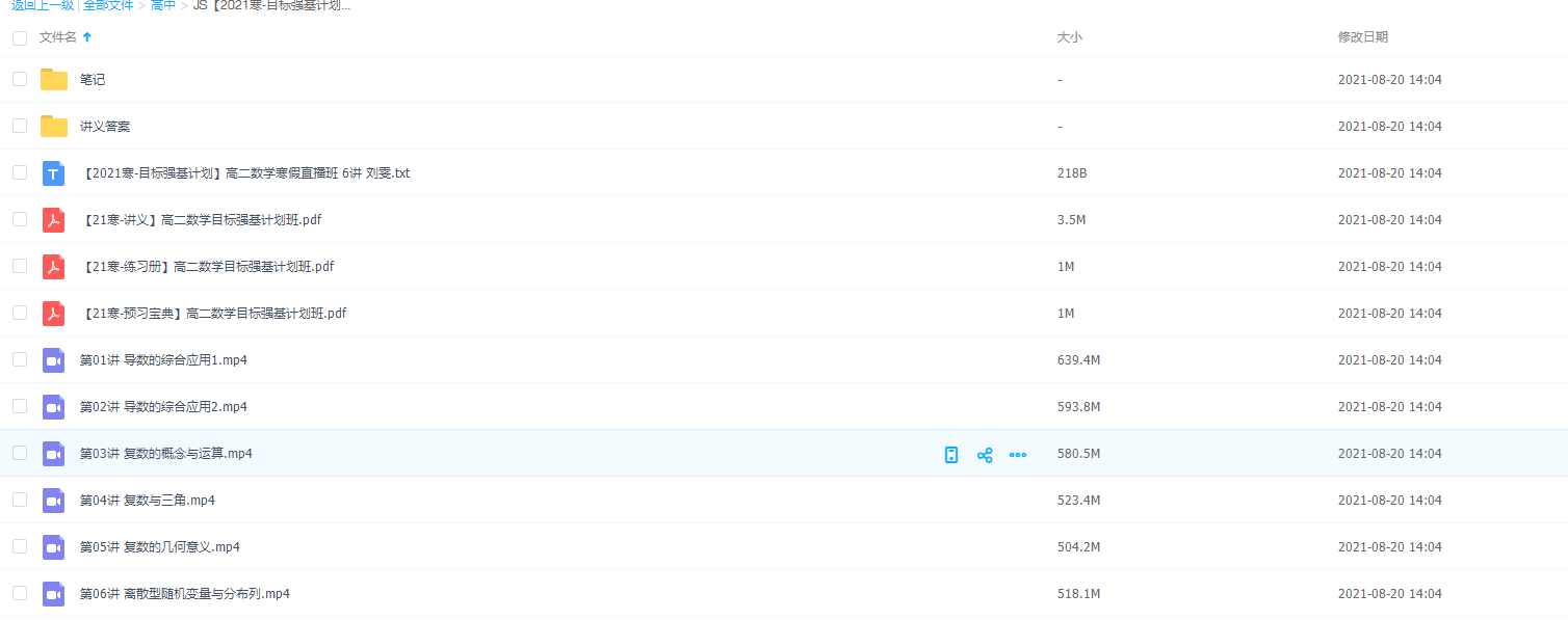2021寒假刘雯高二数学网课直播班(目标强基计划专题6课时)