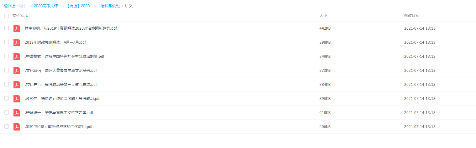 有道精品课2020政治高考刘燊暑假系统班复习资料提升快