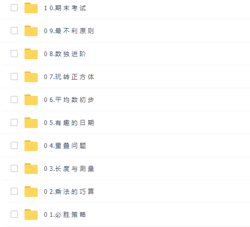 此课件来自蘑菇培优二年级数学课程2021年暑期卓越班课程,此课件主要知识点包括:必胜策略、乘法的巧算、长度与测量、重叠问题、有趣的日期、平均数初步、玩转正方体、数独进阶、最不利原则、期末考试。