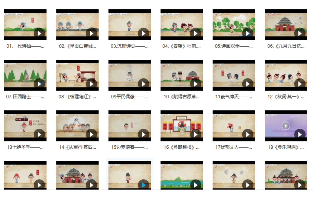 一个非常好的唐诗启蒙教育动画。全面解读唐朝16位著名诗人和经典诗作!