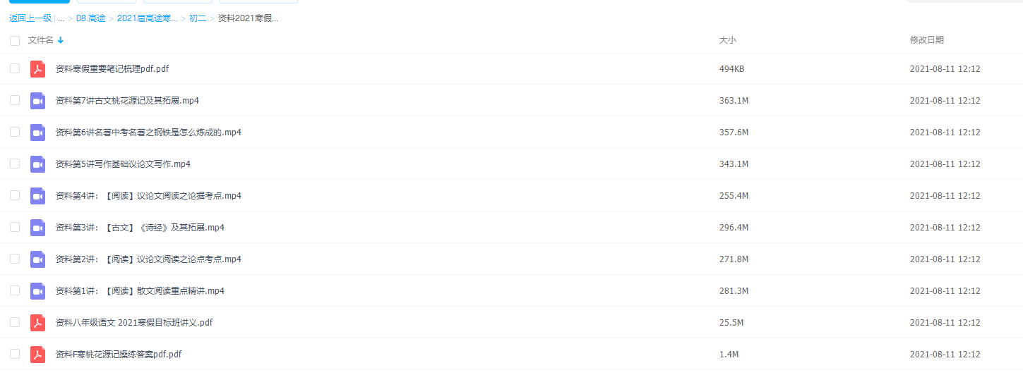 此课件来自高途课堂,2021高途初二王先意语文寒假班完结版,包含视频课程和讲义资料 。 此课件主要内容包括: 散文阅读重点精讲、议论文阅读之论点考点、《诗经》及其拓展、议论文阅读之论据考点、写作基础议论文写作、名著中考名著之钢铁是怎么炼成的、古文桃花源记及其拓展等视频