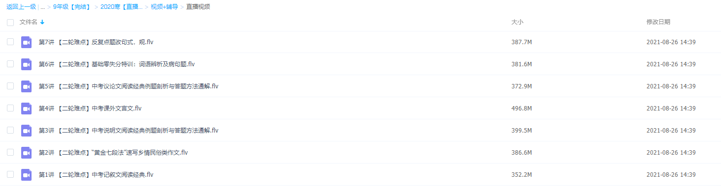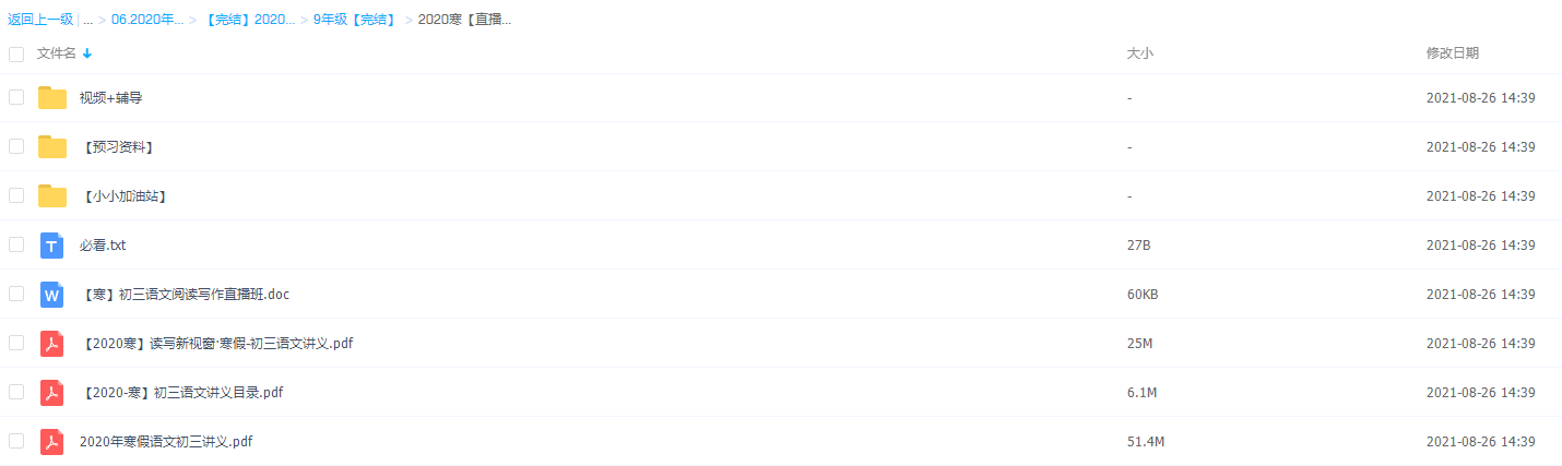 学而思耿泽群2020寒初三语文阅读写作直播班课程资源